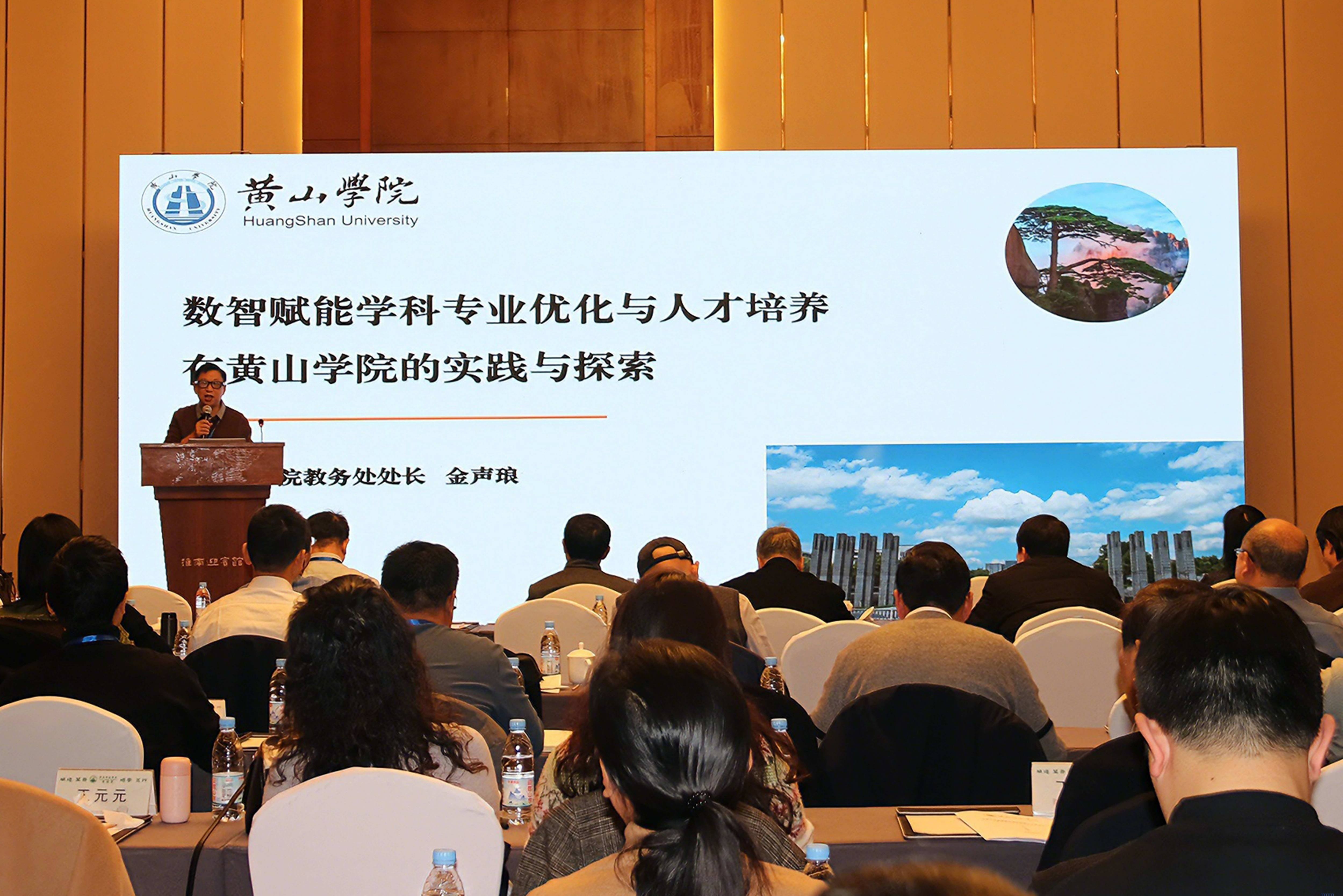 研讨阶段,我校教务处处长金声琅教授以《数智赋能学科专业优化与人才培养在黄山学院的实践与探索》为题作专题报告,他从制度体系、实践举措、成效成果、后续蓝图等四个维度,分享了AI赋能学科专业优化与人才培养的实践经验。